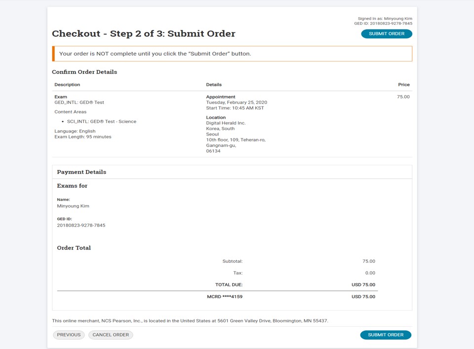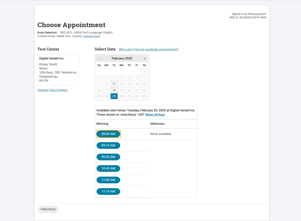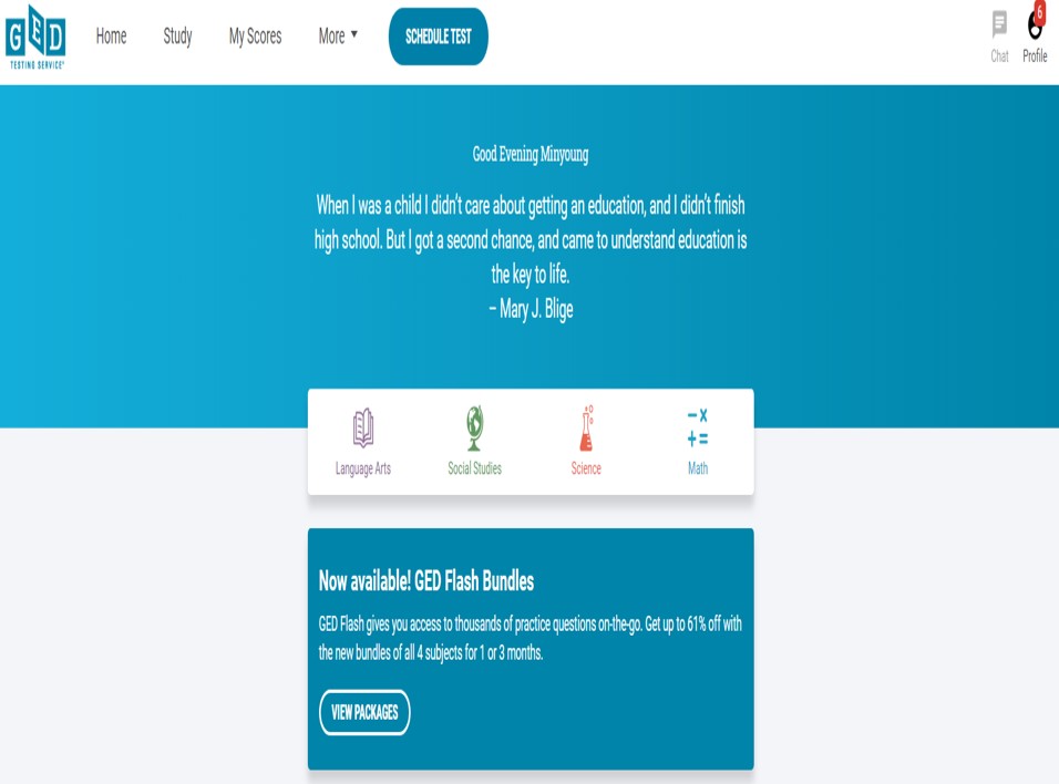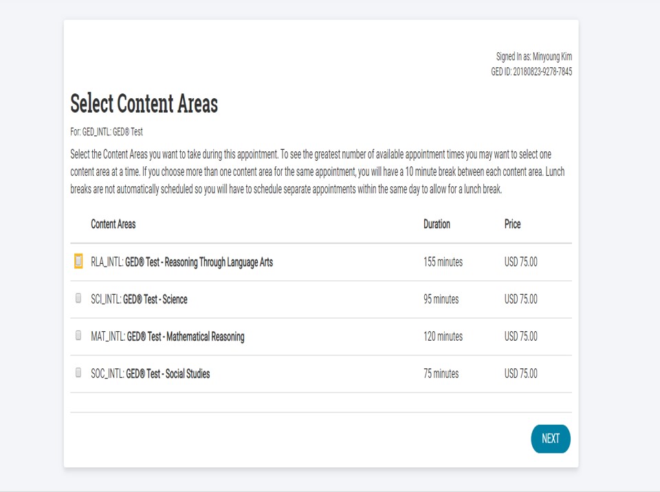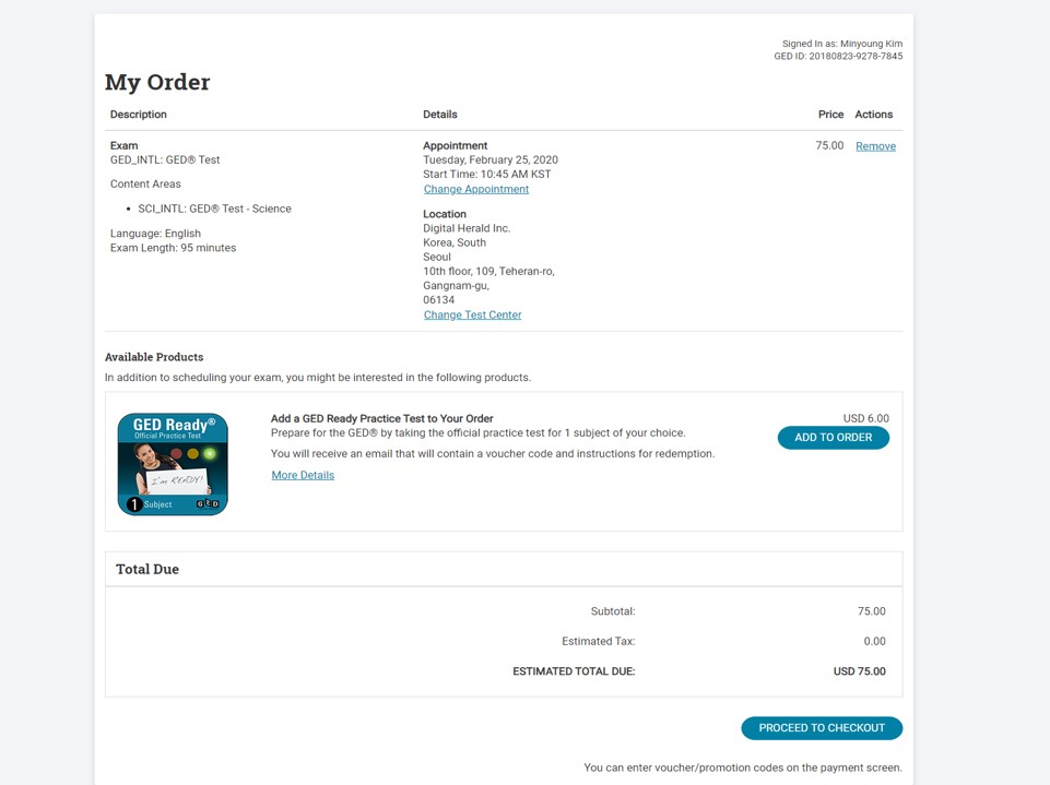 GED 시험 신청은 GED Testing Service 사이트를 통해서 진행하실 수 있습니다.